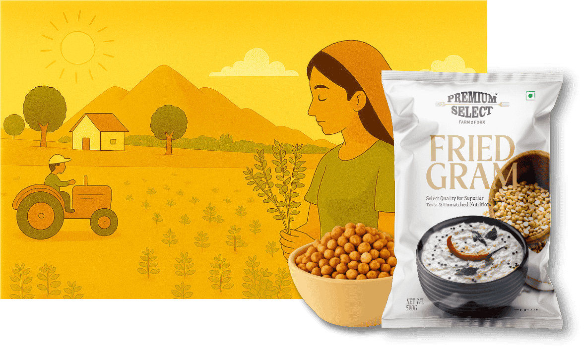 At Premium Select, we carefully choose the finest gram grown in the rich soils of our country, sourced directly from trusted farms to ensure unmatched freshness and consistent quality. Each batch is meticulously processed to preserve its natural nutrients, delivering a delicious crunch and wholesome goodness.